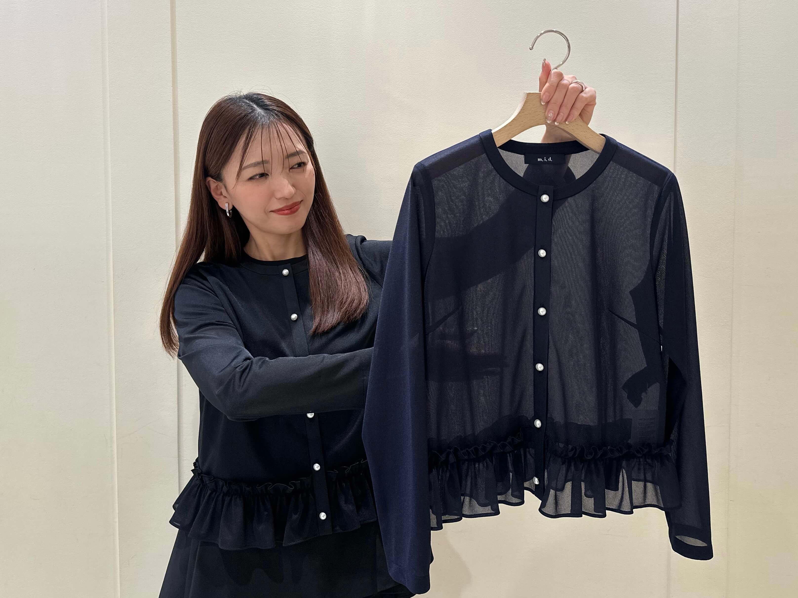 裾フリルが、動くたびにふんわりと揺れ、女性らしさを際立たせます。フロントにはパール調のボタンを施し、クラシカルでエレガントな印象に。 透け感のある素材なのでレイヤードするインナーによってイメージの違いを楽しむことができ、デイリーコーデから、きれいめスタイルまで幅広く活躍します。