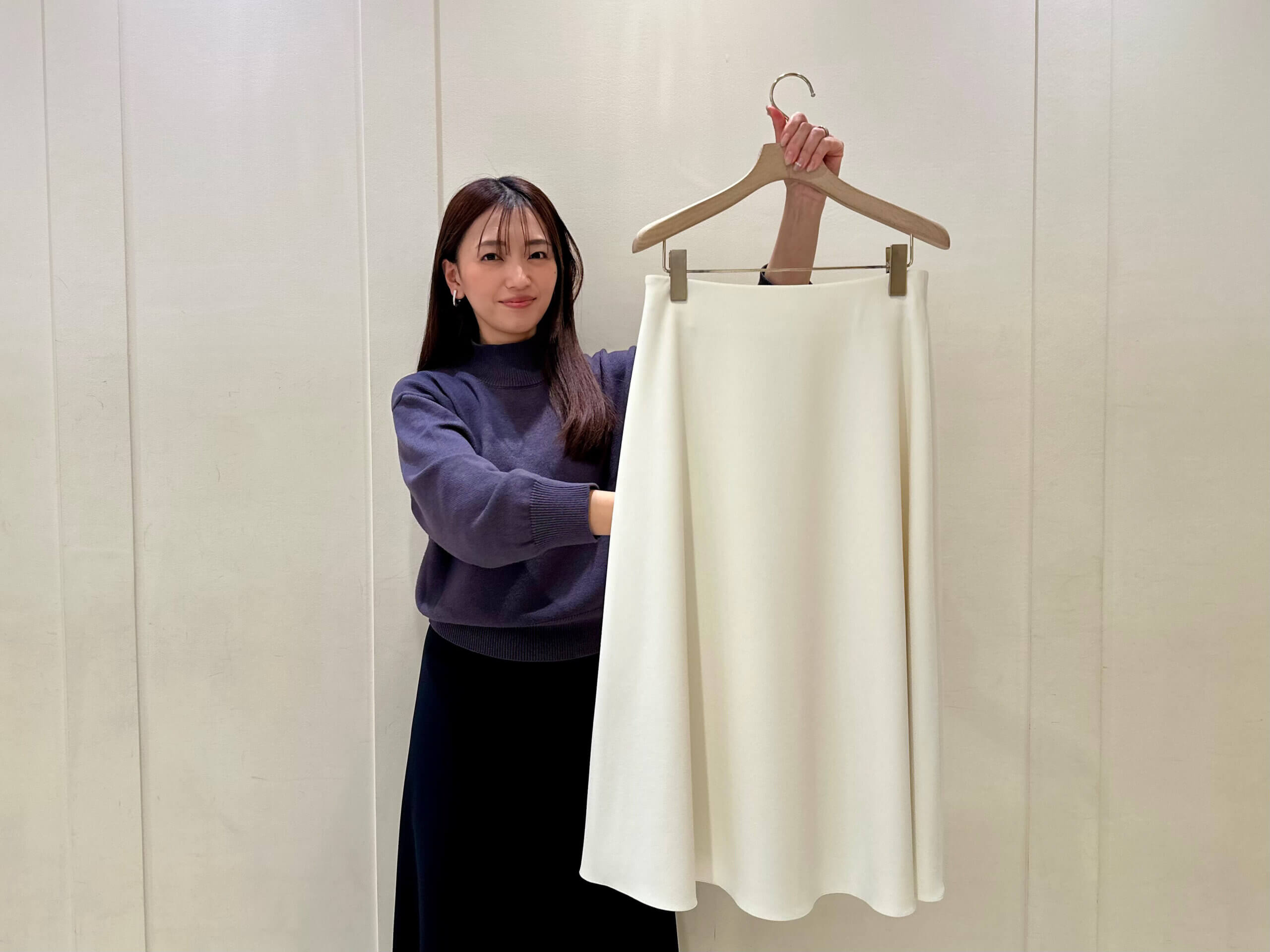 しなやかなストレッチが快適な着心地を与えてくれるニットジョーゼット素材のフレアスカート!ウエストはゴム仕様なので快適な履き心地が魅力です。フレア感がエレガントな雰囲気のスカートは、ベーシックカラーでの展開でコーディネートをシックにまとめてくれます。ほどよく反発性を持ち厚みのある素材感のためシワになりにくく、ウォッシャブルな点もおすすめポイントです!