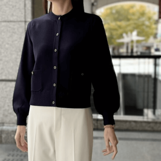 <キルト切替バンドカラーワンピース>のエレガントなシルエットをベースに、<ステンカラーフリルジャケット>を羽織ることで、洗練された雰囲気をプラス。女性らしさを引き立てつつ、きちんと感も演出できるので、オフィスやお出かけにも最適です。シックなカラーでまとめることで、落ち着いた大人の雰囲気を演出しつつ、さりげないディテールが華やかさを添えてくれます。