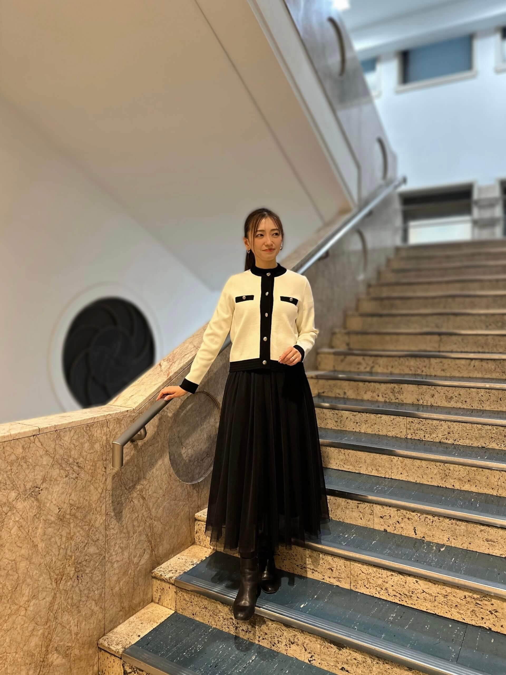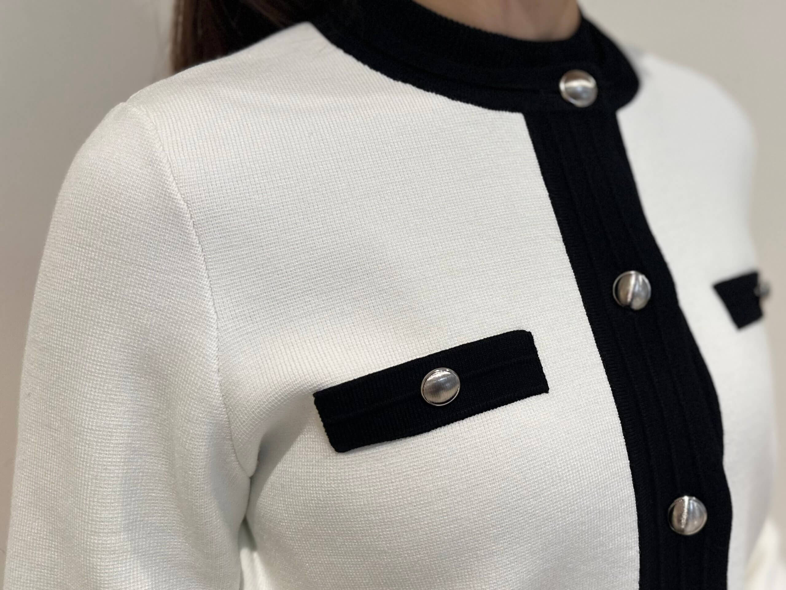 季節の変わり目に!おすすめ、バイカラーニットジャケットのモノトーンコーディネート!