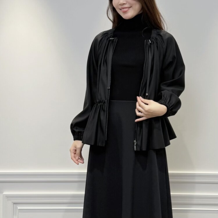 袖と裾に施された生地には、特有の光沢と張り感があるタフタ素材を採用。