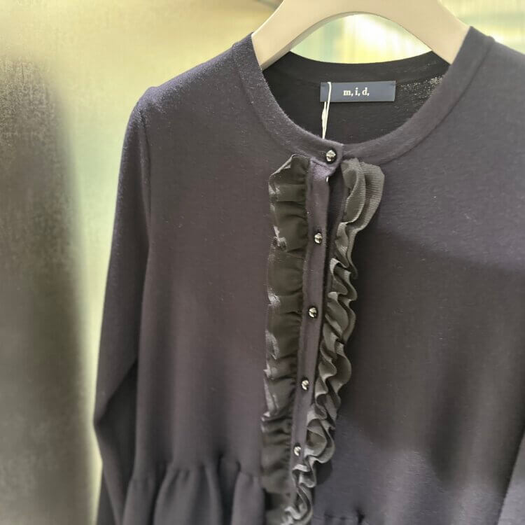 上品な光沢と落ち感のある柔らかなトップスとハリ感があり、しっかりとボトムにボリュームを出してくれるスカートは本当にバランスがいいです。