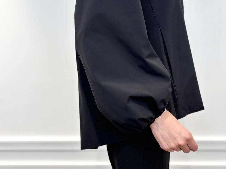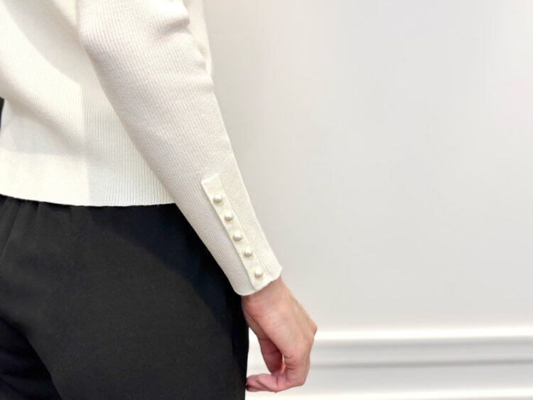シンプルでありながらも袖口に並んだパールデザインがアクセサリー感覚で装いに華を添えてくれます。