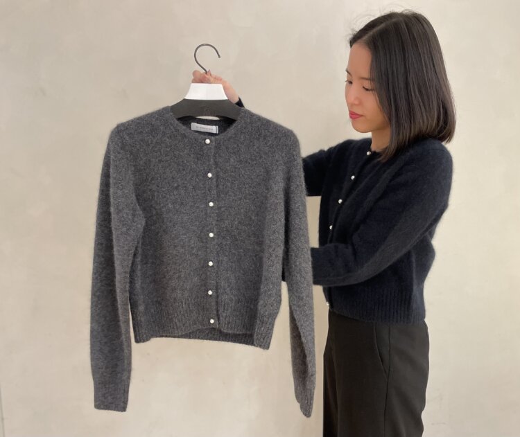 ふんわりとした起毛感が上品なパールボタンカーディガン。