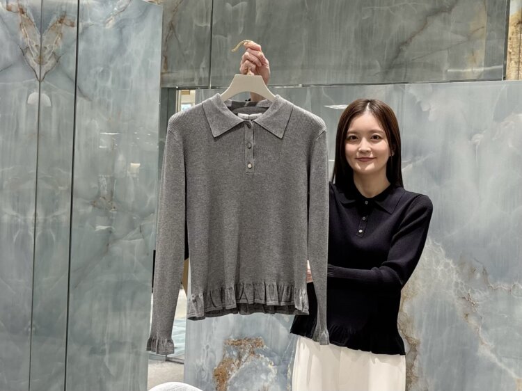 裾と袖口に施した繊細なフリルが、さりげない女性らしさをプラス。