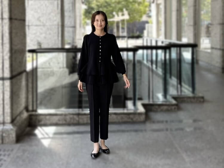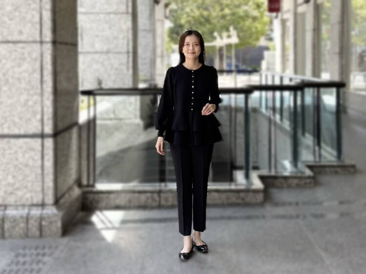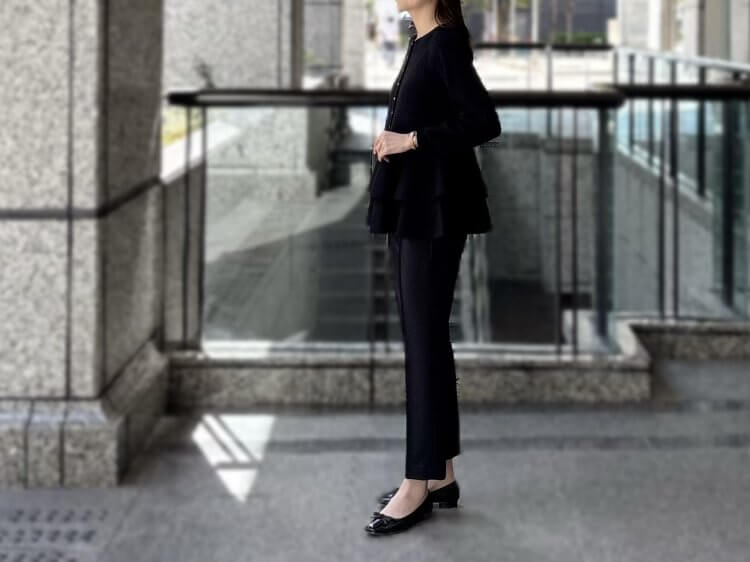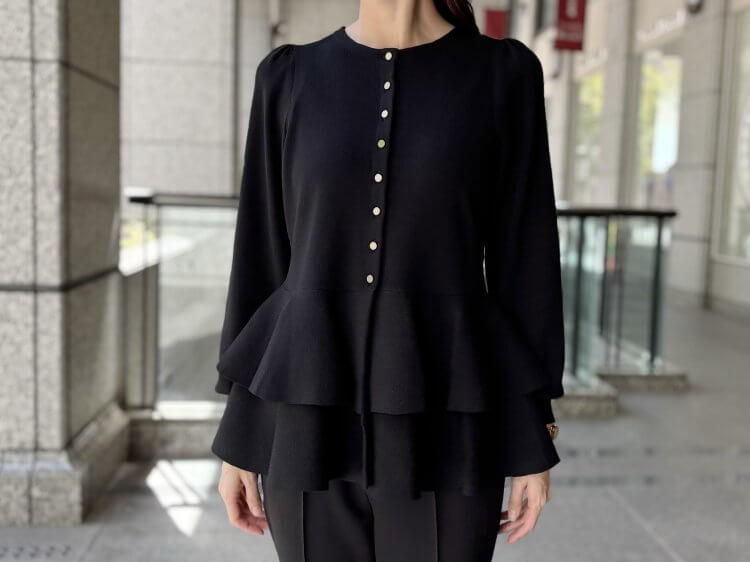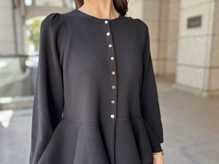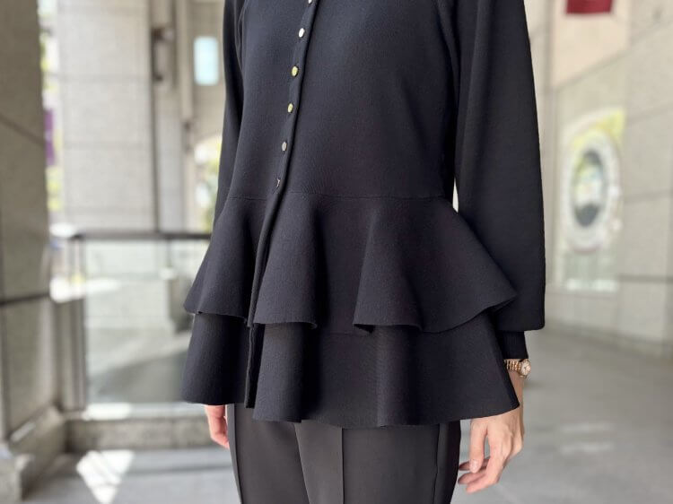 “洗練ブラックで魅せる”エレガントな佇まいを叶えるペプラムニットコーデ