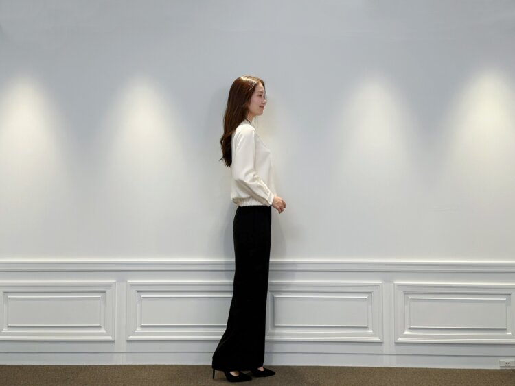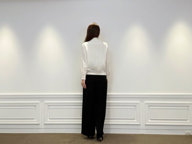 白ブラウスでつくる知的で端正な大人のきれいめパンツスタイル