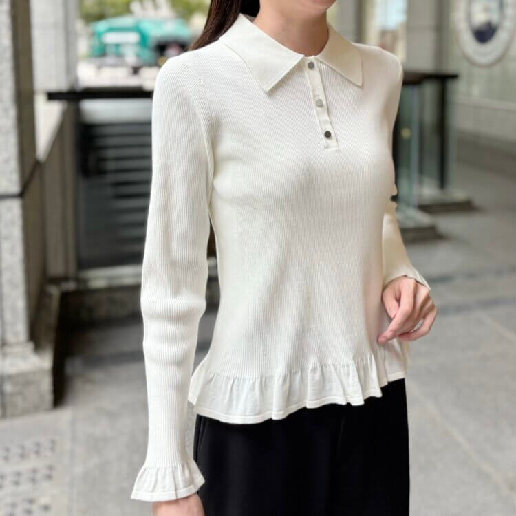シーンによってはボウタイブラウスとレイヤードしても柔らかな雰囲気になりおすすめです。