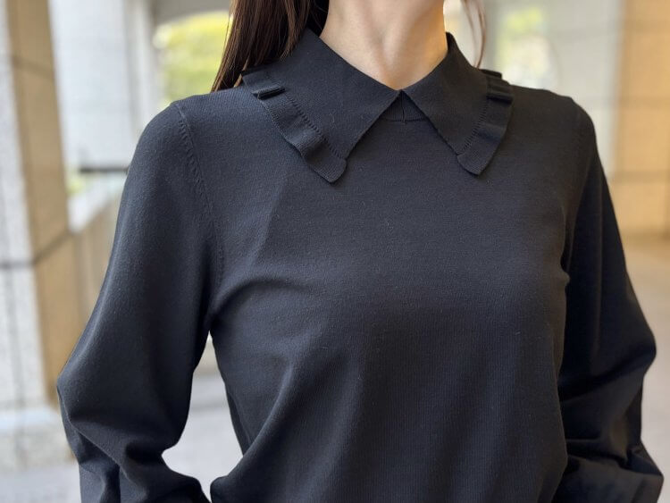 秋のはじまりにぴったりな、華やぎと落ち着きを兼ね備えたブラックニット。