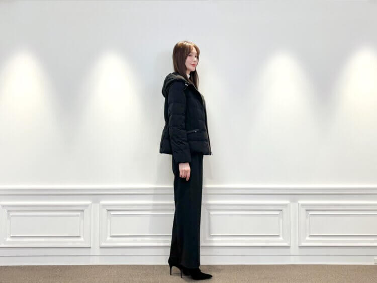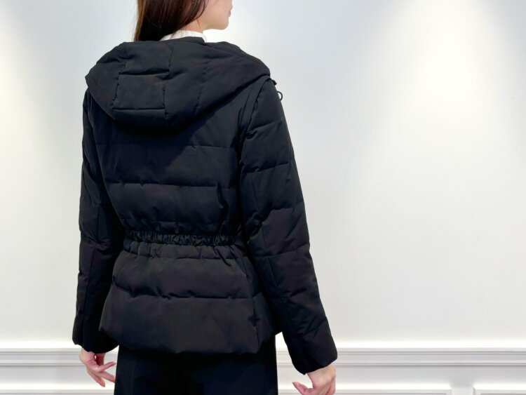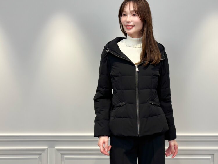 コンパクトなシルエットと上品な艶感がエレガントな<2WAYショートダウンコート>。