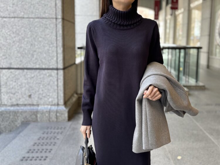 そんな今日は、タートルネックニットワンピースを選びました。