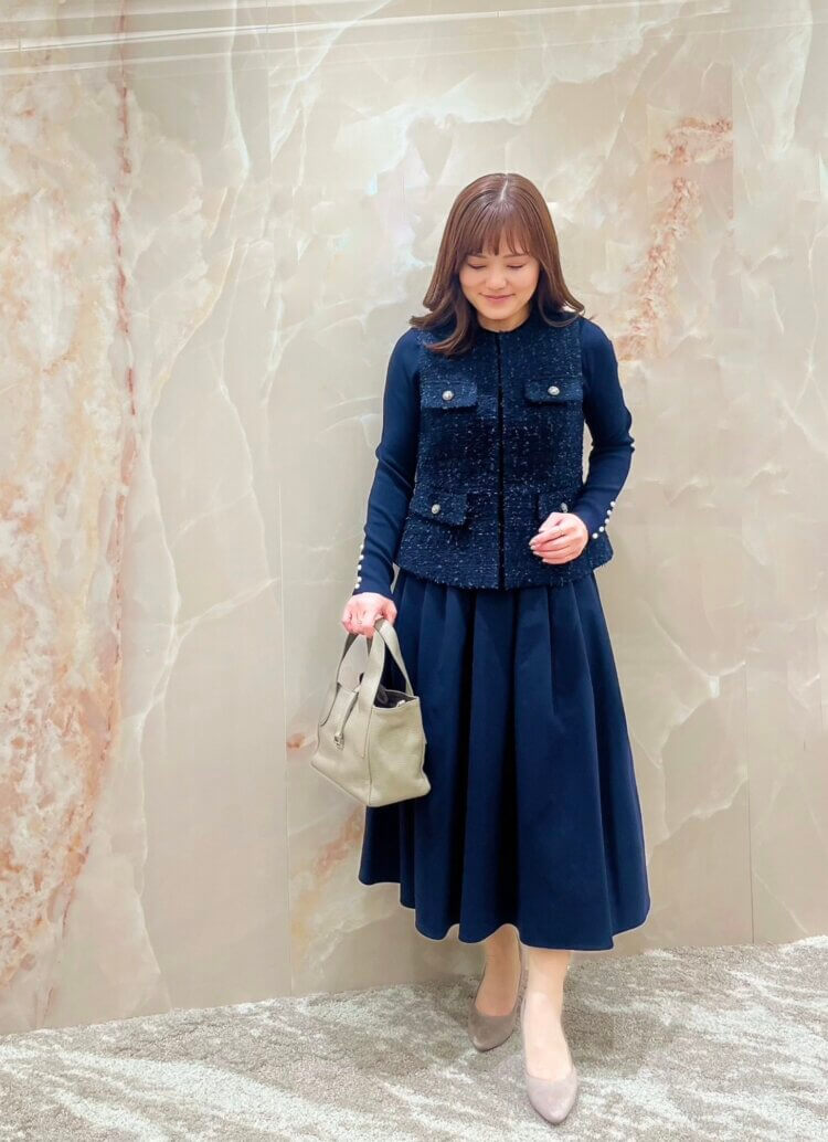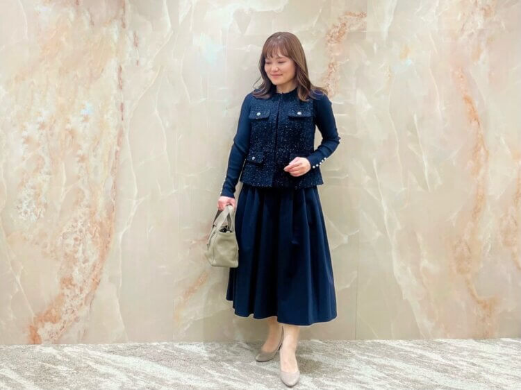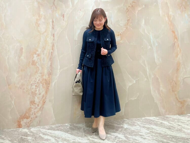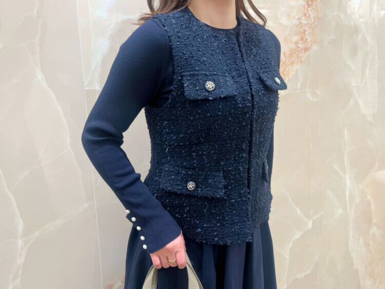 程よい厚みと立体感のあるツイード生地が、品格と華やかさを同時に演出してくれます。