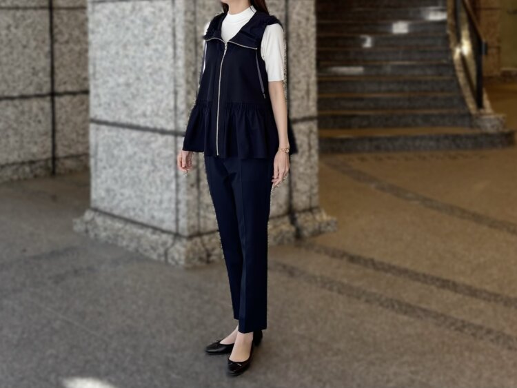 都会的な空気感に映える、ネイビーのワントーンスタイルをご紹介いたします。