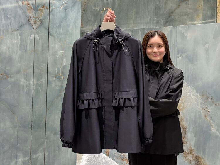 ふんわりとしたスリーブとウエストのフリルが立体的なシルエットを演出し、羽織るだけで女性らしい印象に。