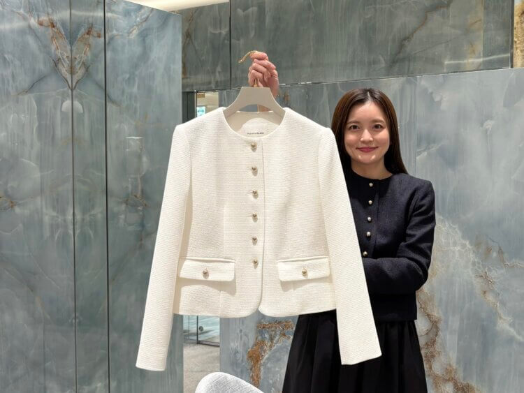 表情豊かなツイード素材とコンパクトなシルエットで、羽織るだけでコーデを格上げしてくれます。