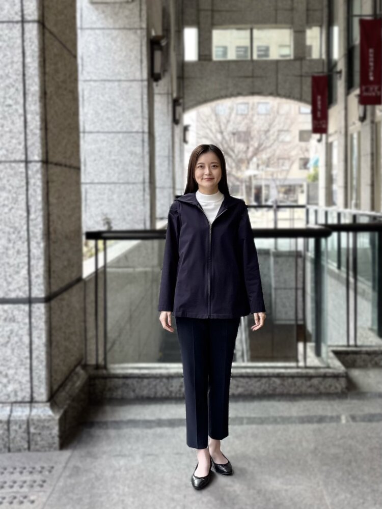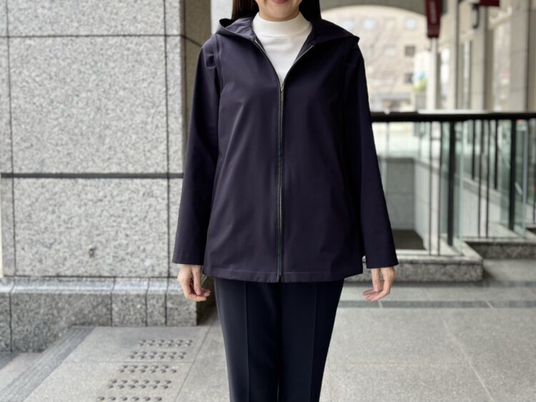 ネイビーのソロテックス2WAYパーカーを主役にした、上品さと機能性を兼ね備えたきれいめカジュアルコーディネートをご紹介いたします。