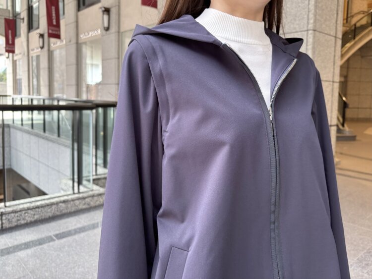 軽やかでしなやかな素材感に加え、撥水・UVカット・速乾機能を備えているため、日常からお出かけまで幅広いシーンに寄り添ってくれる一着。
