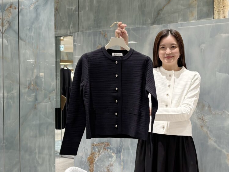 程よい厚みとハリ感で、ジャケットのようなきちんと感がありながら、ニットならではの柔らかな着心地も魅力。