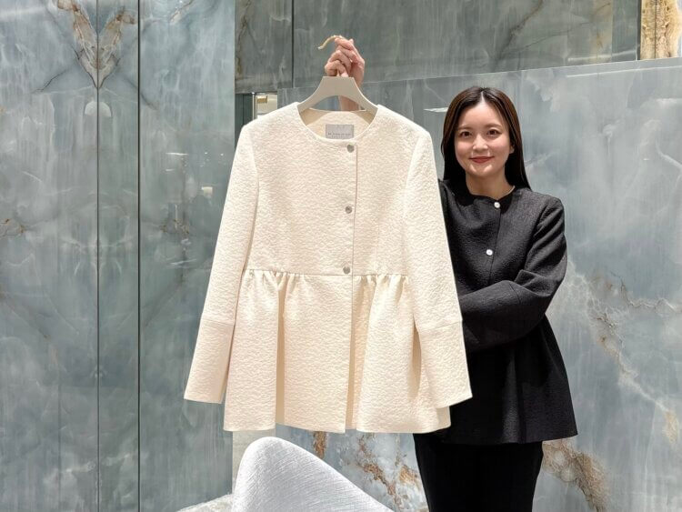 立体的に広がるペプラムシルエットが女性らしい曲線を描き、纏うだけで上品な印象へと導きます。