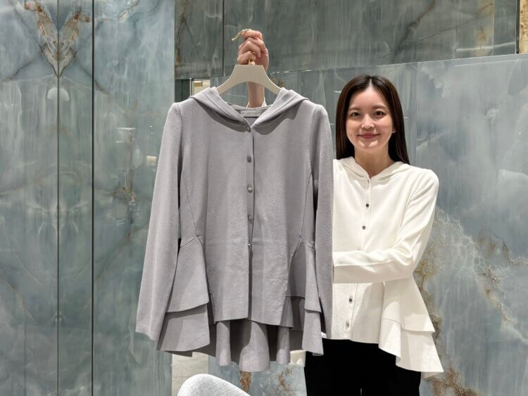 3月前半の売れ筋アイテムとして人気を集めているティアードペプラムニットパーカー。