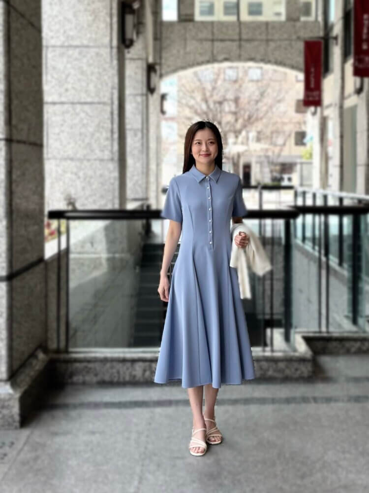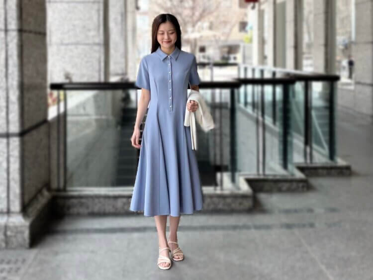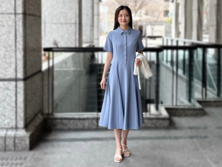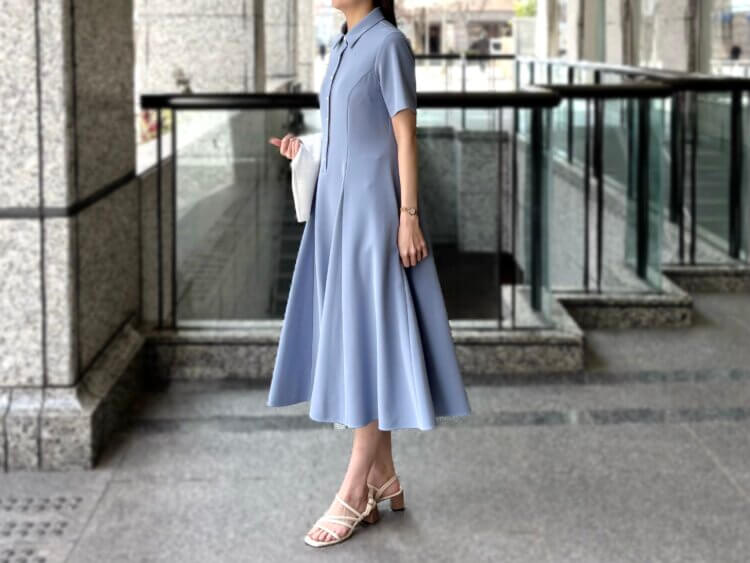 【限定ワンピース】一枚で絵になる、ブルーのシャツワンピで叶える大人の休日コーデ