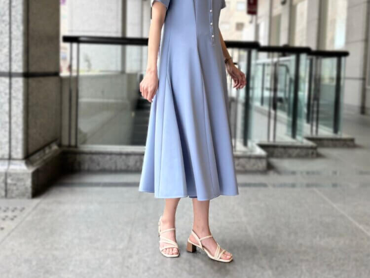歩くたびに優雅に揺れるラインが女性らしく、軽やかな印象を与えてくれます。
