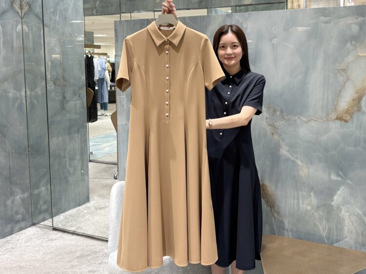 3店舗限定パールシャツストレッチワンピース。