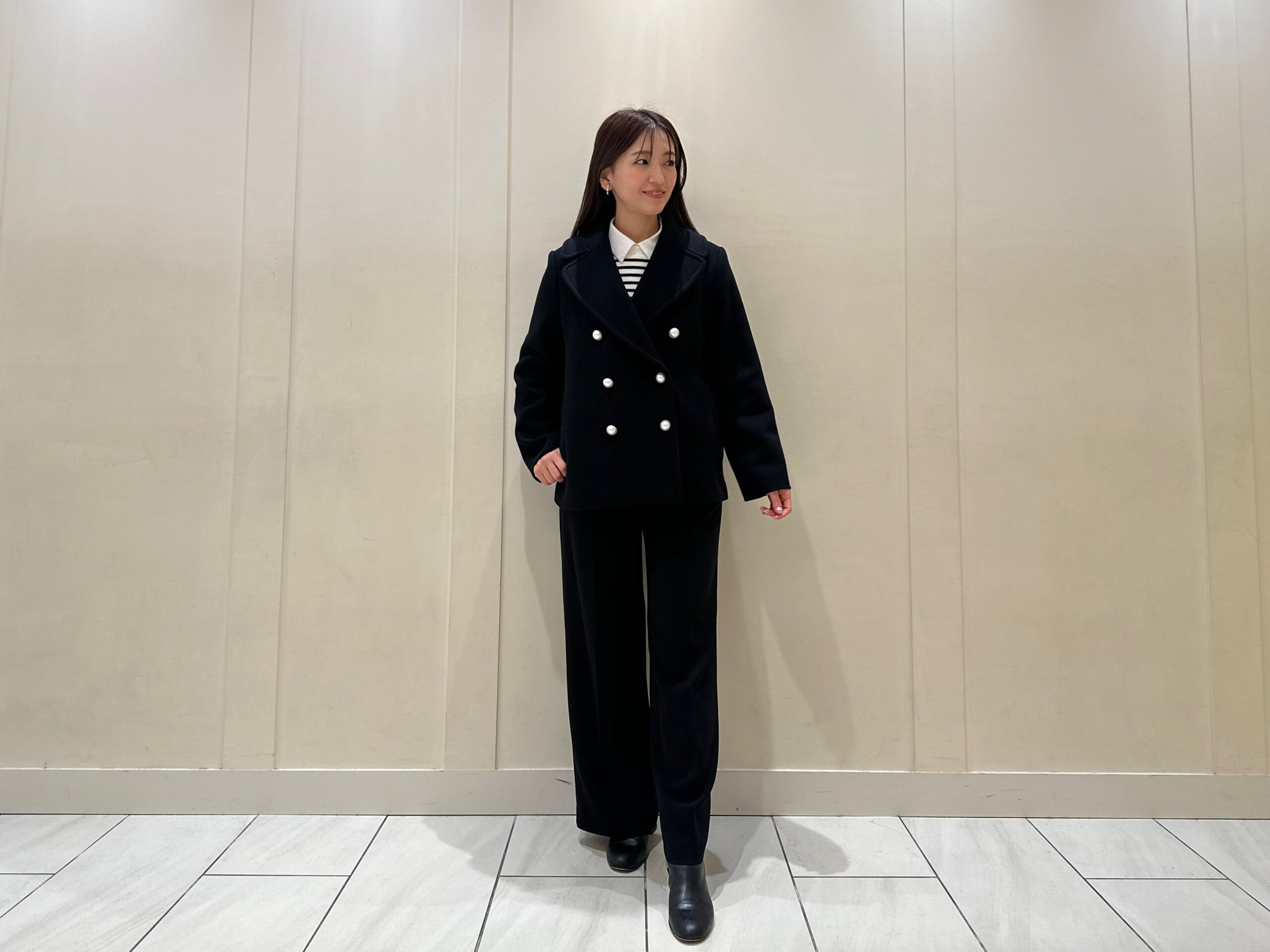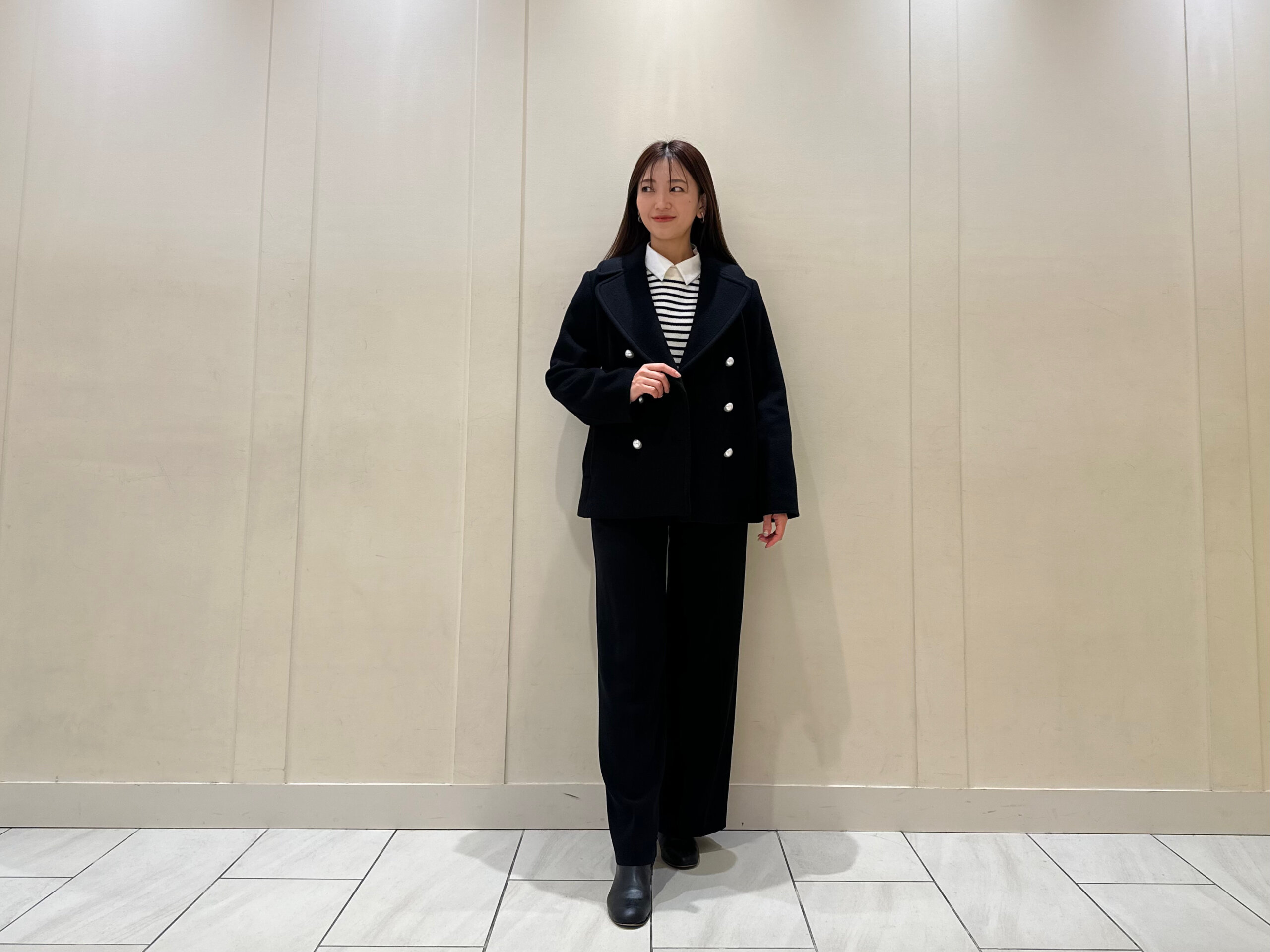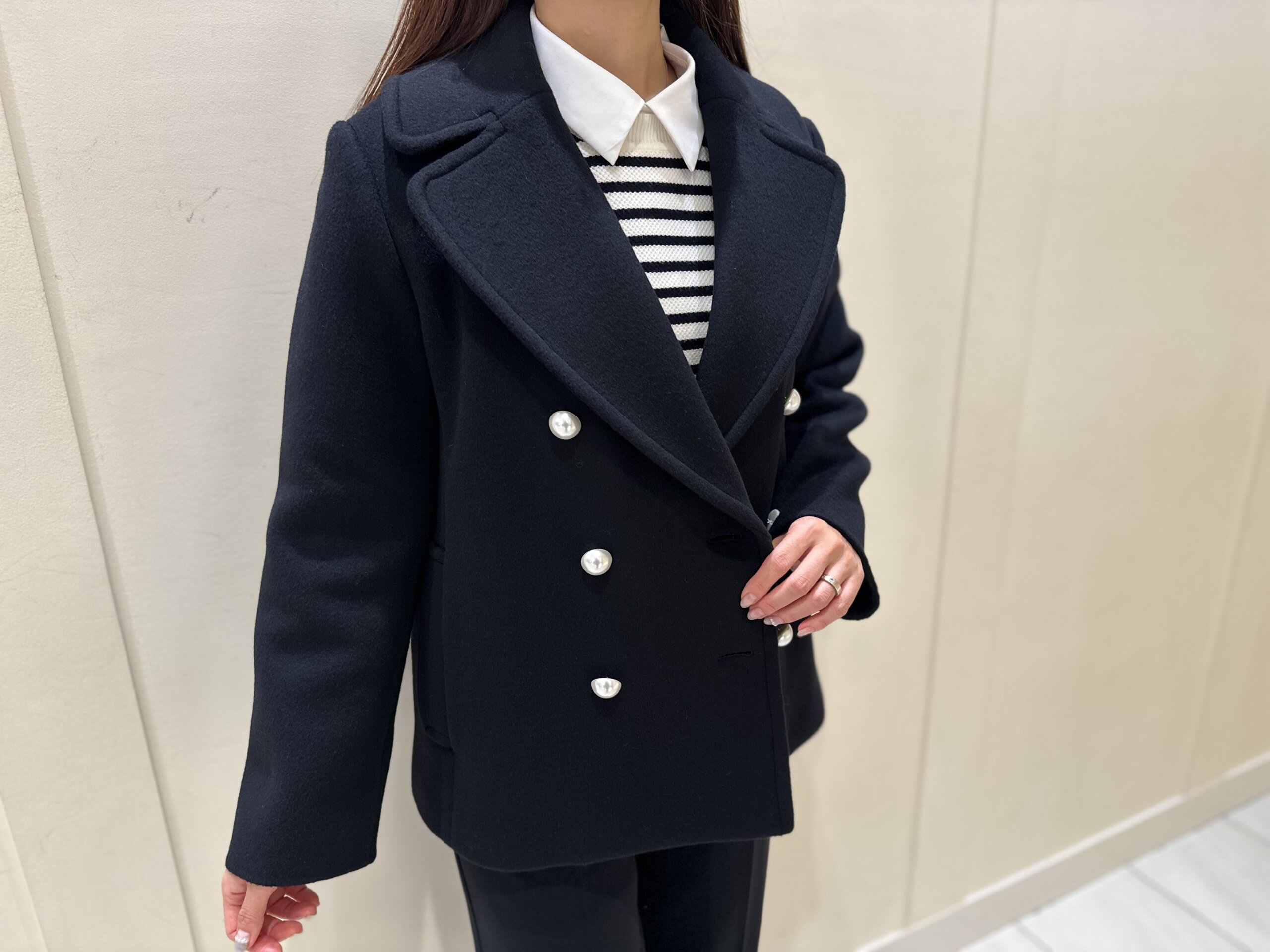 カジュアルに見えがちなピーコートも、エレガントなシルエットを選べば、コーディネートに幅広く合わせていただけます!
