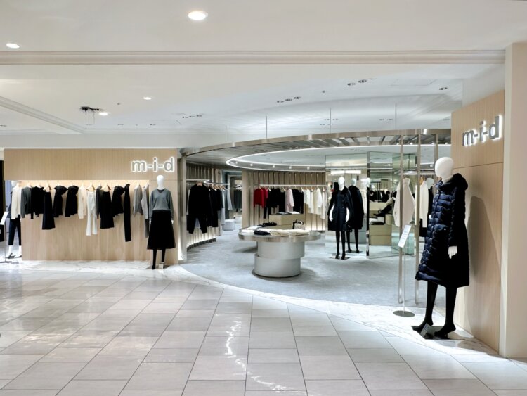 日本橋高島屋S.C.店は、12月20日に複合店〈m-i-d〉としてニューオープンしたばかりの店舗です。キュリオシティデザインの洗練された空間で、4ブランドの世界観を一度にご覧いただける、ゆったりとした店内が魅力となっております。