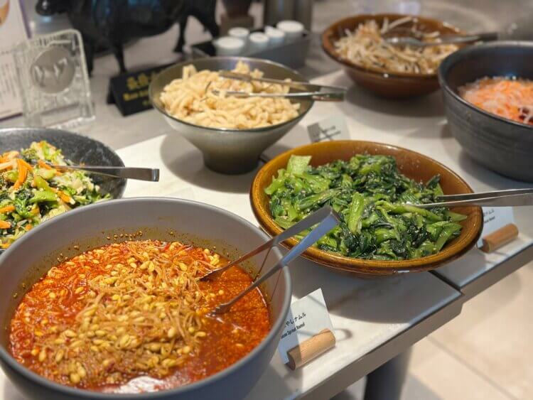 きれいに並んだお肉を見るだけでも気分が上がります。ランチには、ナムルやキムチなどの前菜もついていて、彩りも豊か。