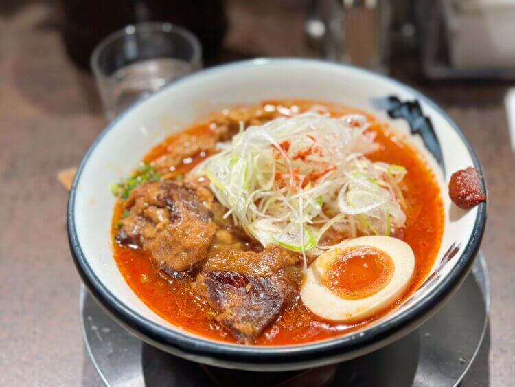 辛紅といえば、やっぱり有名なのはこの真っ赤なスープのラーメン。見た目からしてかなりのインパクトですが、旨味のある辛さでクセになる味です。