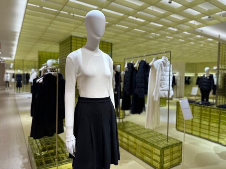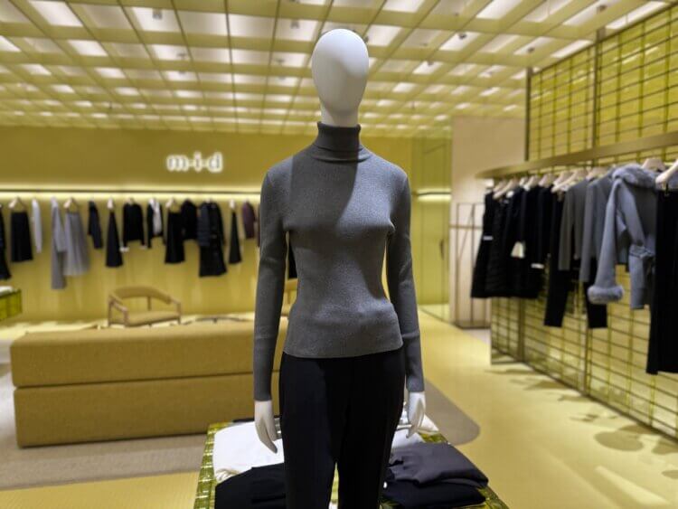 リブ編みのコンパクトなシルエットが美しいラインを引き立てます。