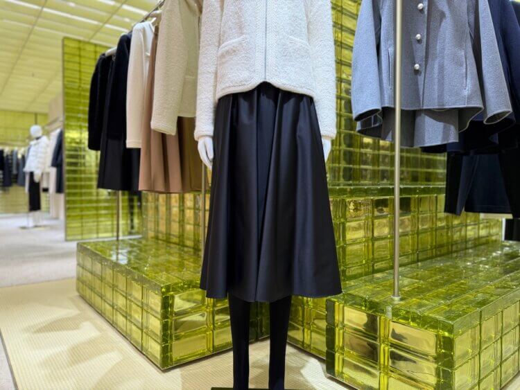 定番人気のウエストゴムフレアスカートは冬のアイテムとの相性も◎。
