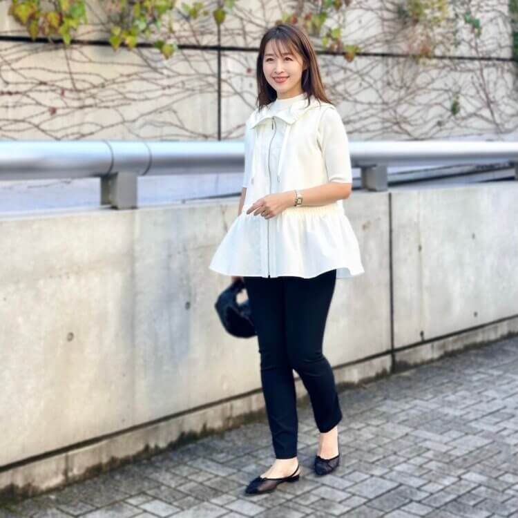 長めの丈ですが、シアー素材で程よく裾が透けて軽やかに、広がりすぎないシルエットが大人っぽく、さらりと揺れるフレアシルエットが美しいアイテムです。