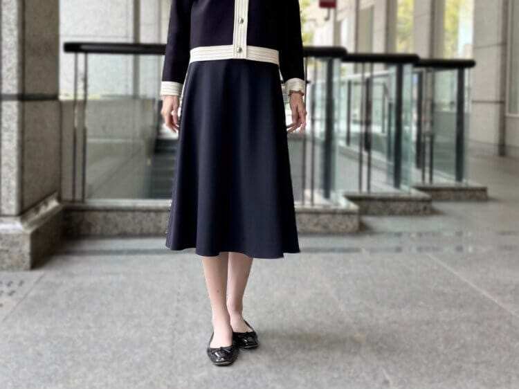 膝下丈なので、お仕事やきちんとしたい場にオススメの一枚です。