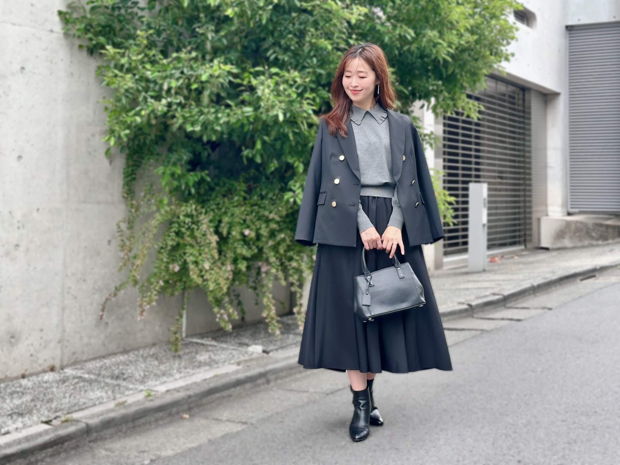 シャツやニットに重ねるだけで、きちんと感のある大人のスタイルが完成します。