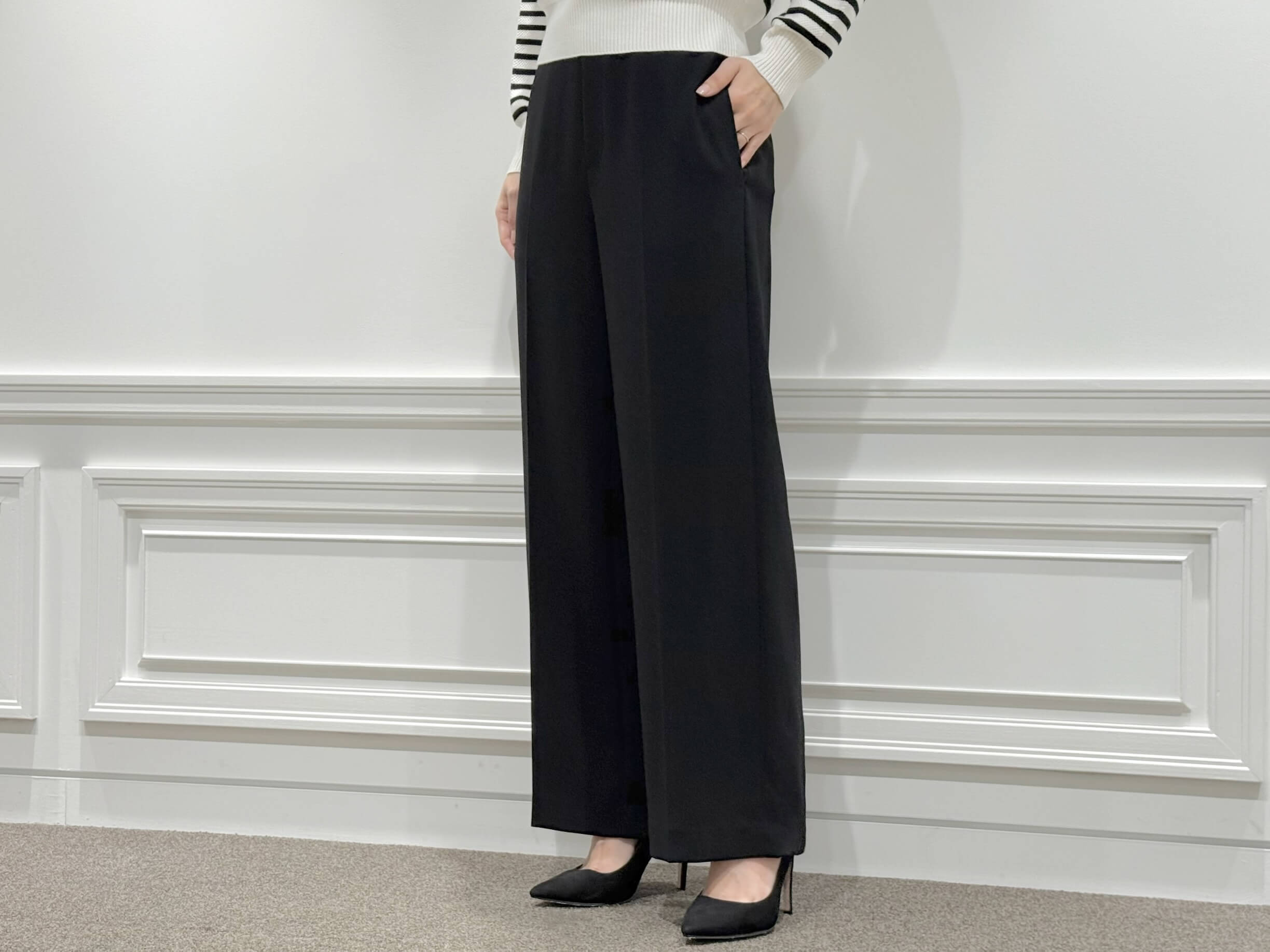 しなやかな落ち感とセンタープレスによる美しい縦ラインが脚をすらりと見せてくれる一本。
