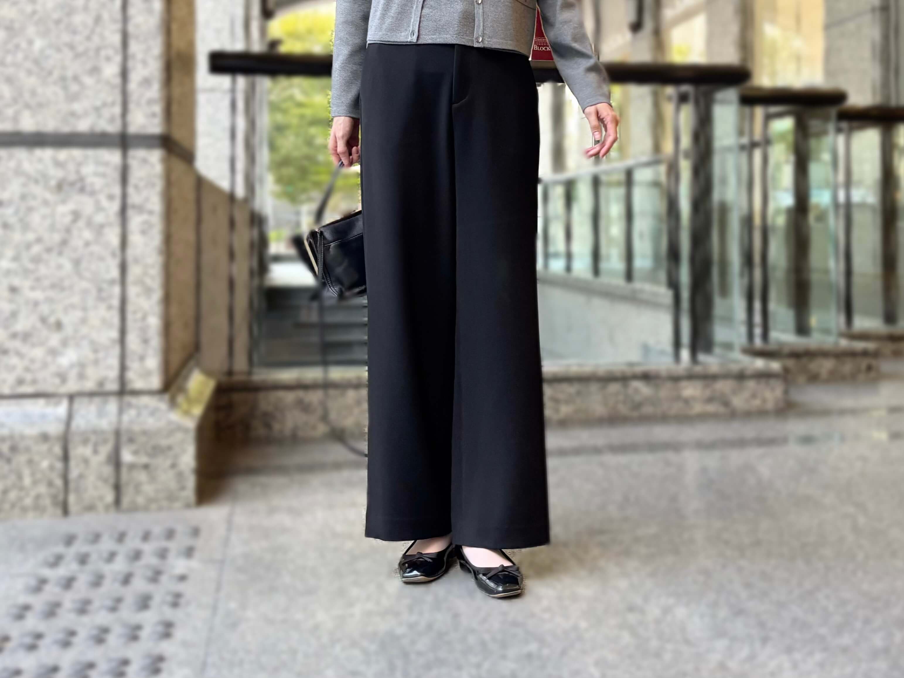 センタープレスが効いた細身のシルエットがきちんと感をプラスしながらも足さばきも軽やかに仕上げてくれます。