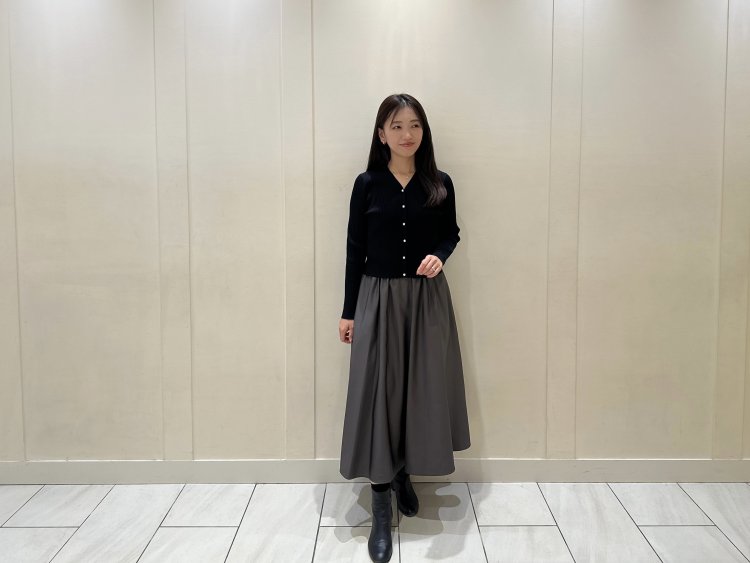 <ウエストリボンVネックニットワンピース> とセットアップでお召し頂くのもおすすめです!