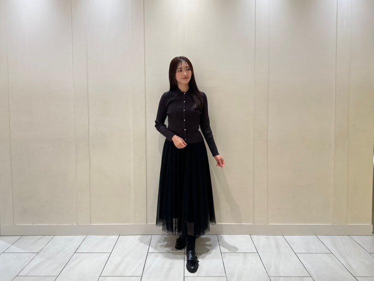裾にチュールを重ねたフリルデザインで、華やぎと軽やかさを両立。