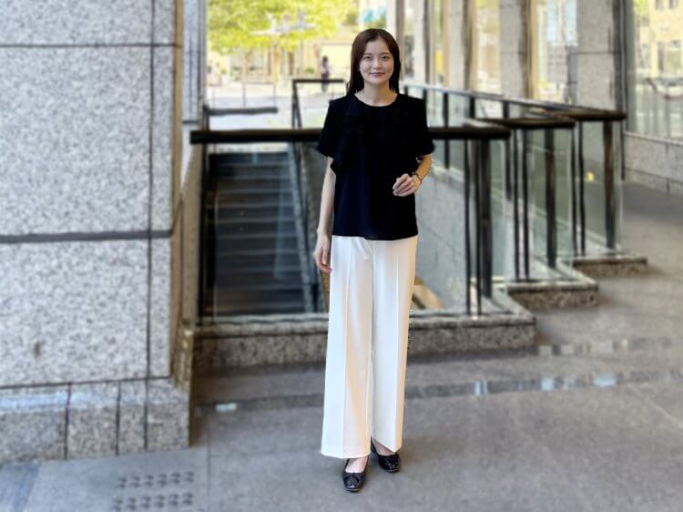 パンプスやバレエシューズを合わせれば通勤やお子さまの行事にも◎。