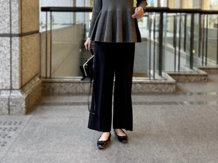 パンプスやバレエシューズを合わせれば通勤やお子さまの行事にも◎。