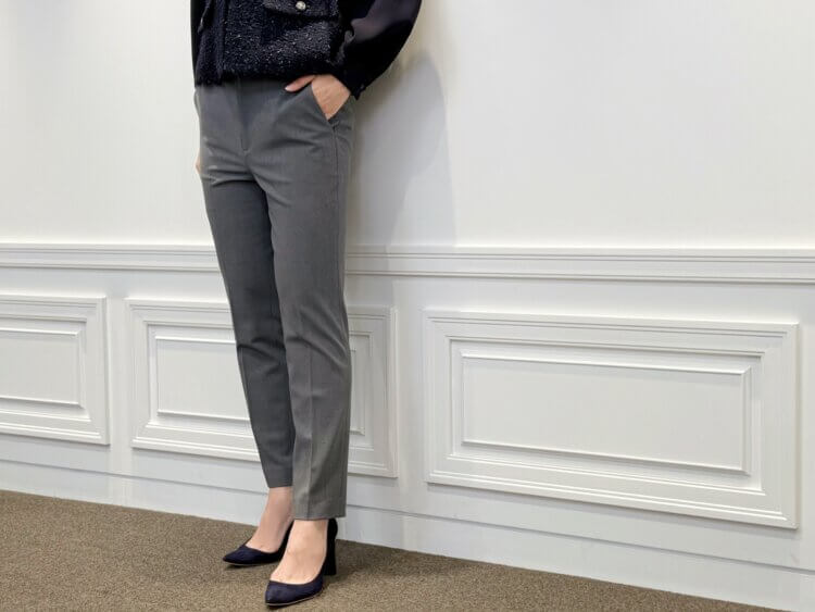 シンプルかつ細身のシルエットのパンツは、ワードローブに揃えていると必ず重宝します!