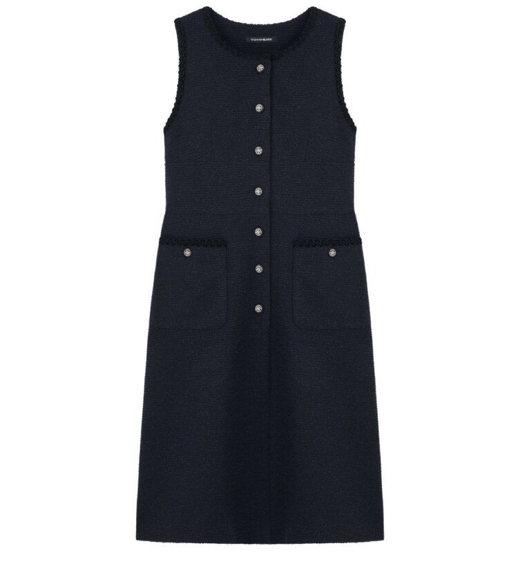軽やかで伸縮性のあるファンシーツイードニットを使用したワンピース 。