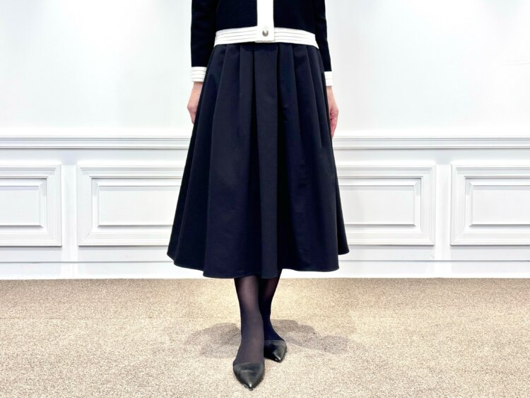 程よいハリ感と美しいフレアシルエットは、動くたびにふんわりと揺れてエレガントに。