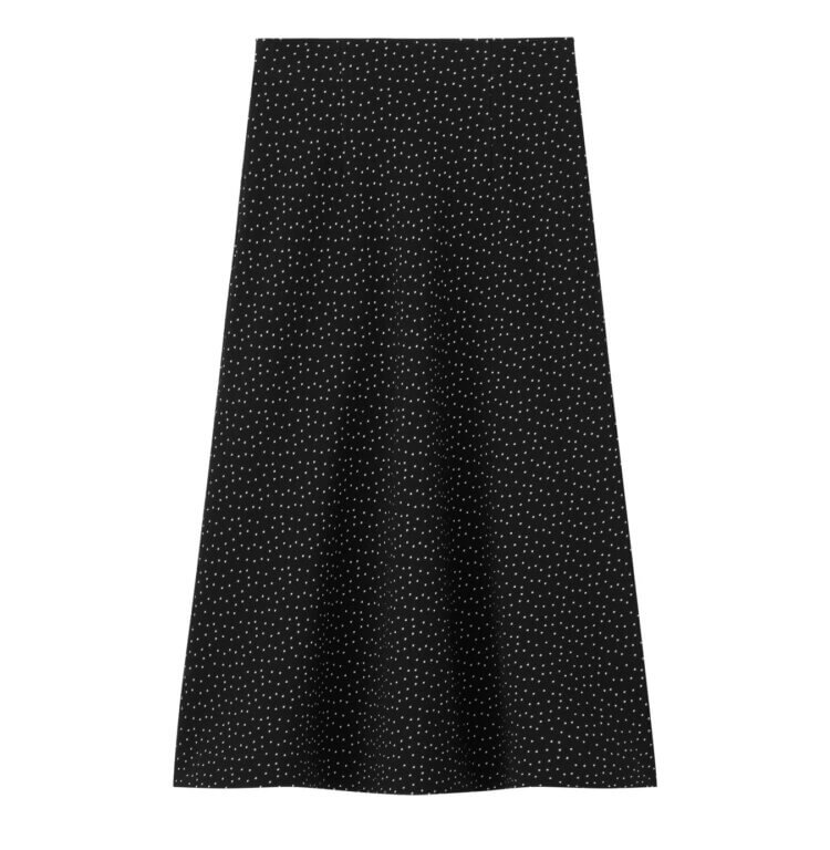 上品なドットジャガード生地が大人の華やかさを添えるフレアスカート。