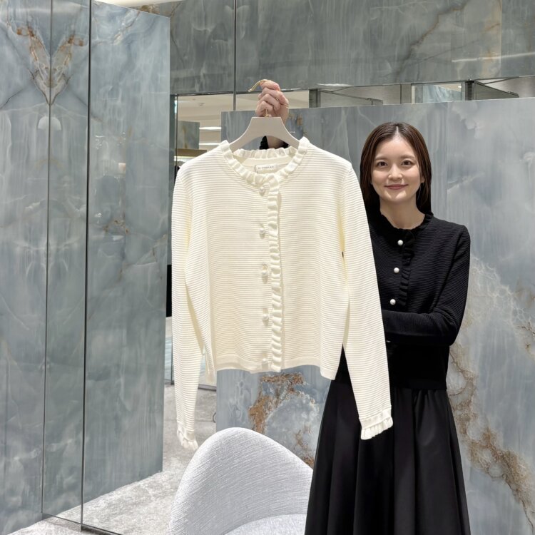 袖口のフリルがさり気なく、気負わないお洒落が叶う一枚です。