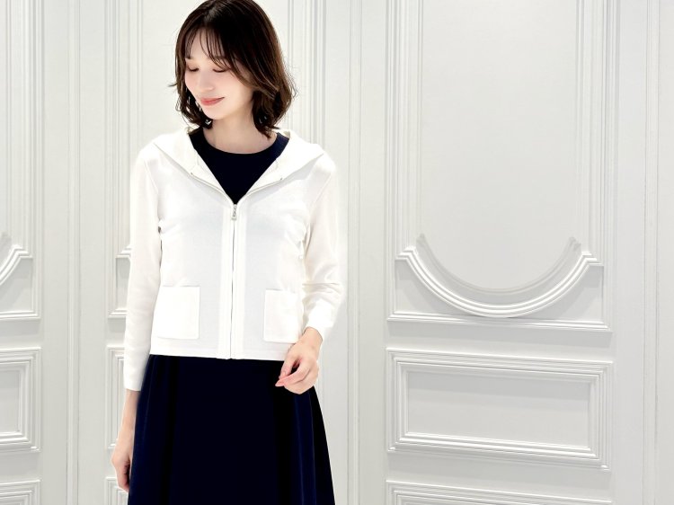九分袖ジップアップニットパーカー ¥28,600