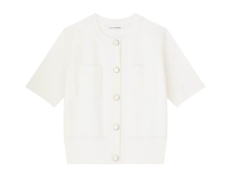 程よい厚みとハリ感があるため、カーディガンとして羽織るのはもちろん、ボタンを留めてプルオーバーのように着ることで、よりきちんと感のある印象に。