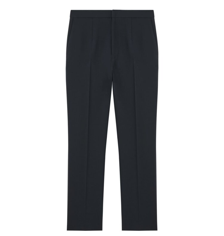 しなやかなドレープと上質な質感が特徴のダブルクロス生地を使用したテーパードパンツ。トリアセテート主体の素材は程よいハリと伸縮性があり、快適な穿き心地と美しいシルエットを両立します。センタープレスが脚をすっきり長く見せ、上品で知的な印象に。オフィスから休日まで幅広く活躍する着回し力の高い一本です。